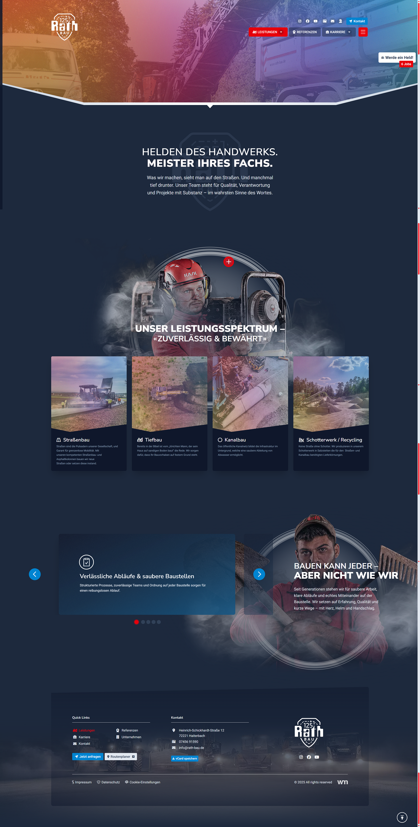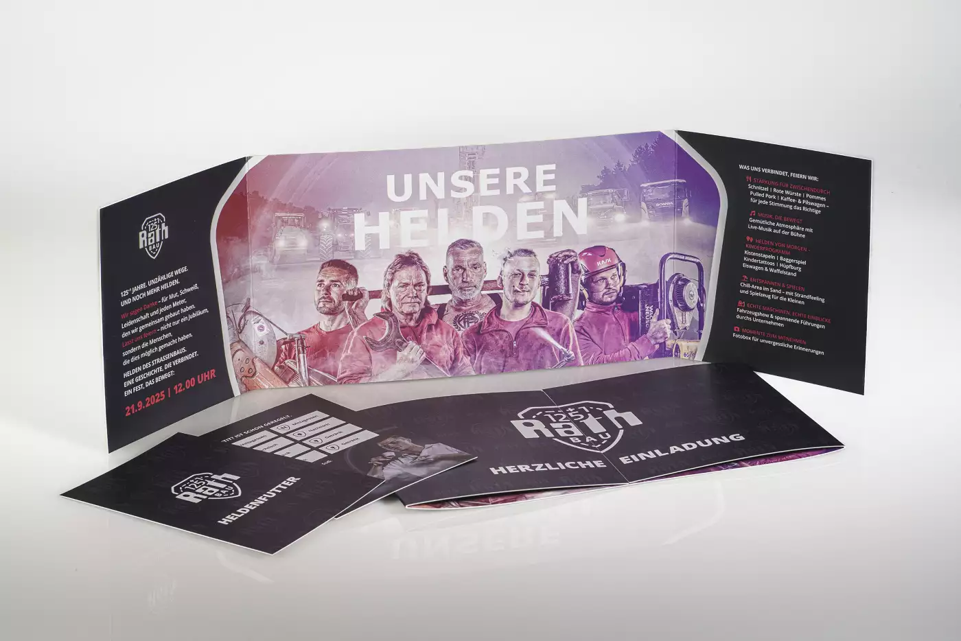 Zum 125+1-jährigen Jubiläum von Rath Bau haben wir ein starkes Leitmotiv geschaffen: Helden im Straßenbau. Die Idee: Mitarbeiter nicht als anonyme „Arbeitskräfte“ zeigen, sondern als Persönlichkeiten, die täglich Verantwortung übernehmen und sichtbar stolz auf ihr Handwerk sind.