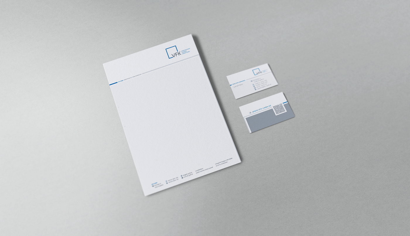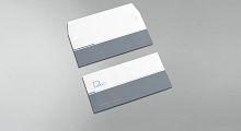 Bei der Gestaltung der Geschäftsausstattung wurden die klaren Formen und Linien mit den beiden Firmenfarben aufgenommen. Dadurch wird Sicherheit und Kompetenz ausgestrahlt. Die flächige Gestaltung mit dem dunklen Grauton unterstreicht die schlichten Gestaltungselemente und verleiht einen sehr wertigen Charakter.